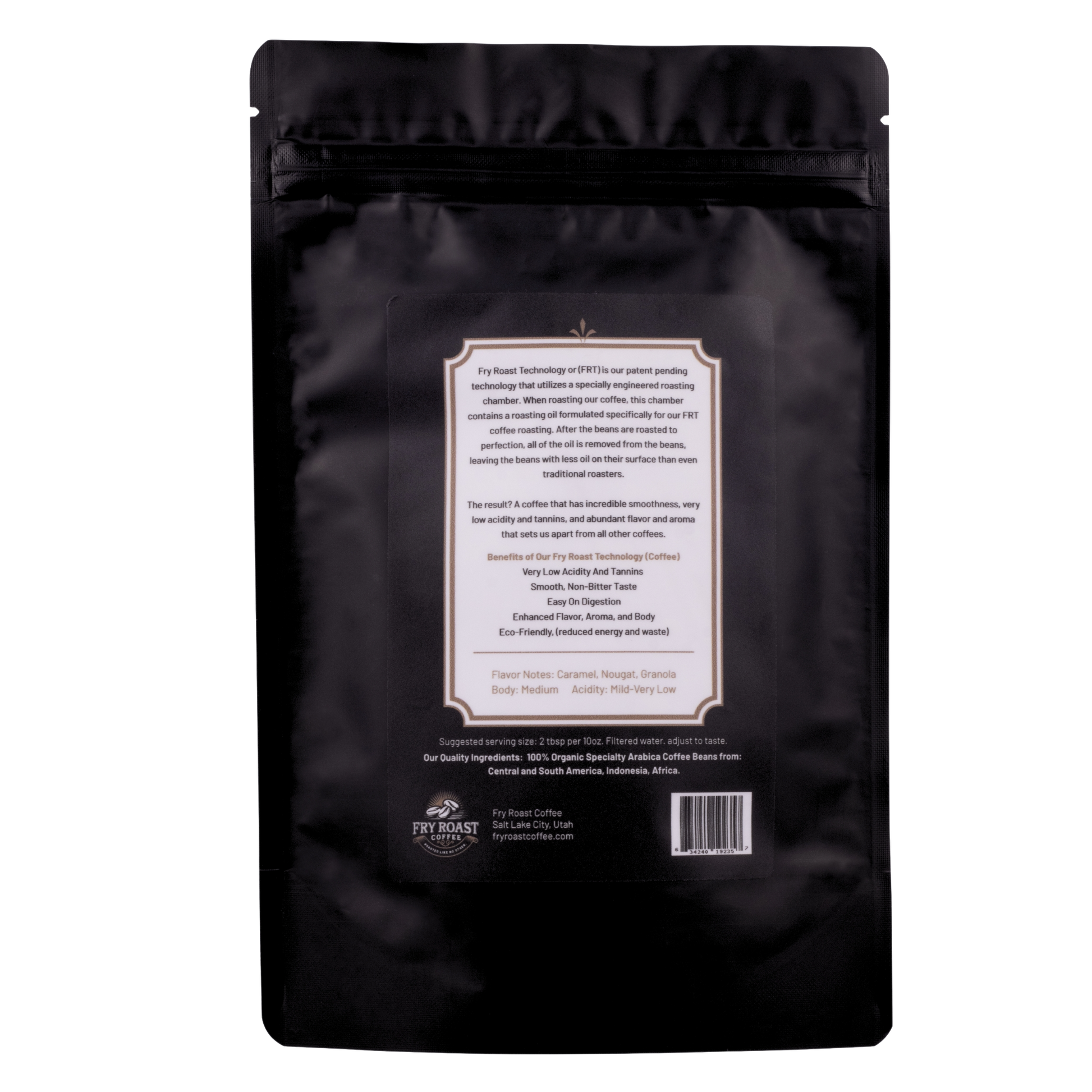 Fry Roast Technology or (FRT) is our patent pending technology that utilizes a specially engineered roasting chamber. When roasting our coffee, this chamber contains a roasting oil formulated specifically for our FRT coffee roasting. After the beans are roasted to perfection, all of the oil is removed from the beans, leaving the beans with less oil on their surface than even traditional roasters.